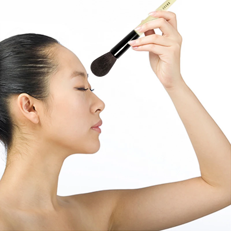 Good Offer for High Quality BB Powder Brush Wood Handle Soft Goat Hair Flame Shape Big Makeup Powder Blusher Brush